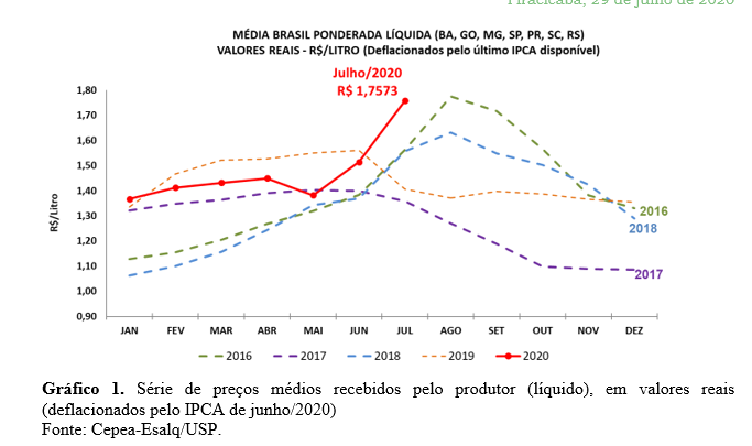 LEITE: PREÇO AO PRODUTOR SOBE 16% EM JULHO E ATINGE RECORDE PARA O MÊS