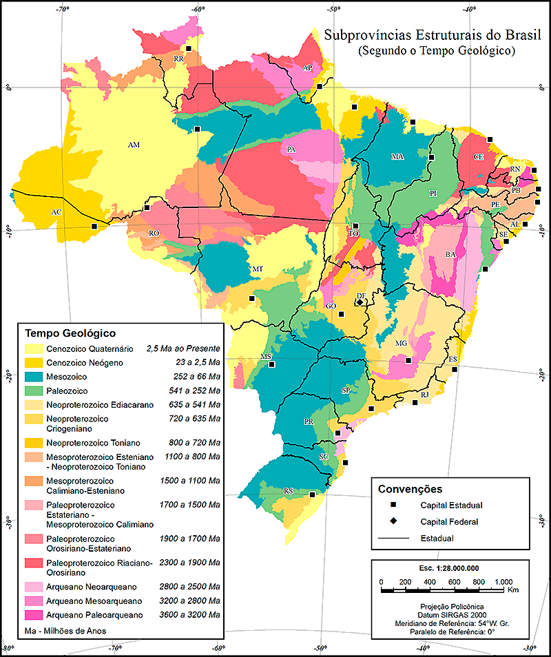 IBGE detalha em mapas as 97 subprovíncias estruturais do país